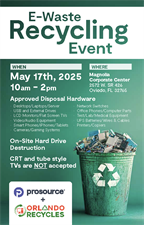 Special Giveaway: We will be having a giveaway for the most pounds of e-waste disposed of, so bring in as much as you can!